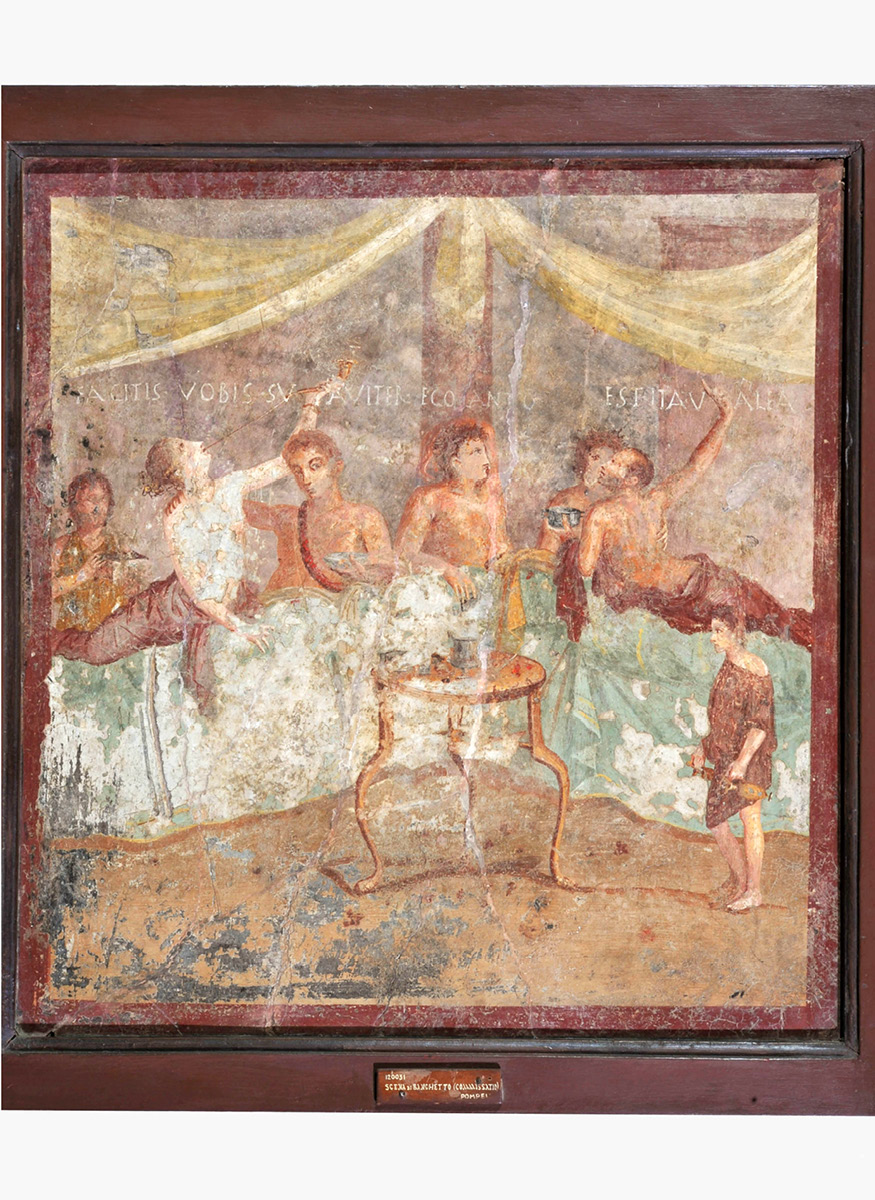 Il percorso di visita è organizzato secondo un criterio topografico che si focalizza sui singoli centri e sui contatti tra i diversi gruppi linguistici. Si apre con le colonie della Magna Grecia, luogo nevralgico per la diffusione dell’alfabeto in Occidente a partire dall’VIII secolo a.C., e dedica una particolare attenzione a Neapolis, città che si esprime in lingua greca nei testi ufficiali fino al III secolo d.C. Prosegue con le attestazioni in lingua osca dai centri campani di Capua, Nola, Pompei e Cuma, che documentano culti, istituzioni politiche e religiose. Di particolare rilievo, il frammento della Tabula Osca Bantina, il documento più lungo che sia noto in lingua osca insieme al Cippo Abellano, cui si affiancano i documenti dall’area irpina e le testimonianze relative al santuario sannitico di Pietrabbondante. La parte più cospicua dell’allestimento è riservata al processo di romanizzazione e alla vita pubblica di centri come Pompei, Ercolano e Pozzuoli, di cui possiamo conoscere magistrati, opere edilizie, culti e attività produttive come la fabbricazione di laterizi o la produzione di vino. Non mancano le testimonianze più estemporanee, come i graffiti rinvenuti lungo le strade o le scritte dipinte sui muri di Pompei in occasione delle competizioni elettorali o dei giochi gladiatori.